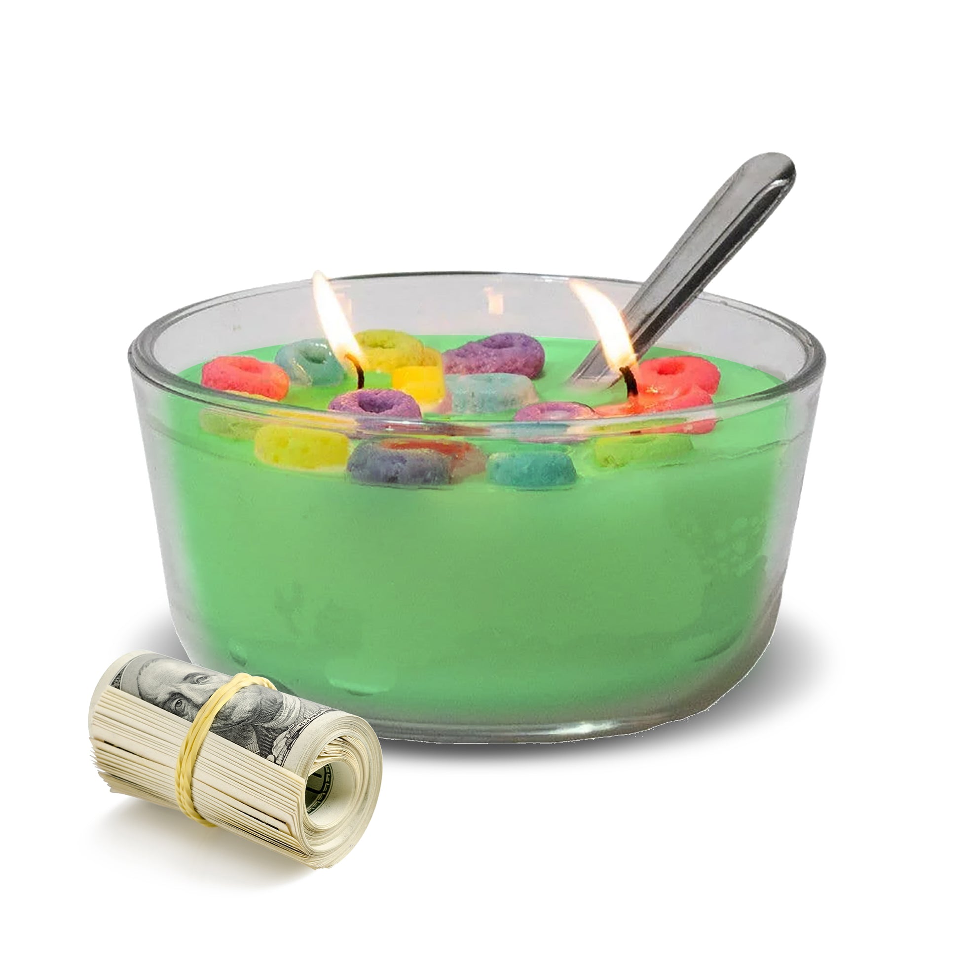 Enjoy over 80 hours of clean, soy wax burn time with our Amazon Rainforest Cereal Bowl Cash Candle. Packaged in a reusable glass container with a lid and spoon, the experience continues long after the candle is gone. Perfect for yourself or as a unique gift, this candle offers the soothing scent of nature paired with the thrill of a cash surprise hidden inside!