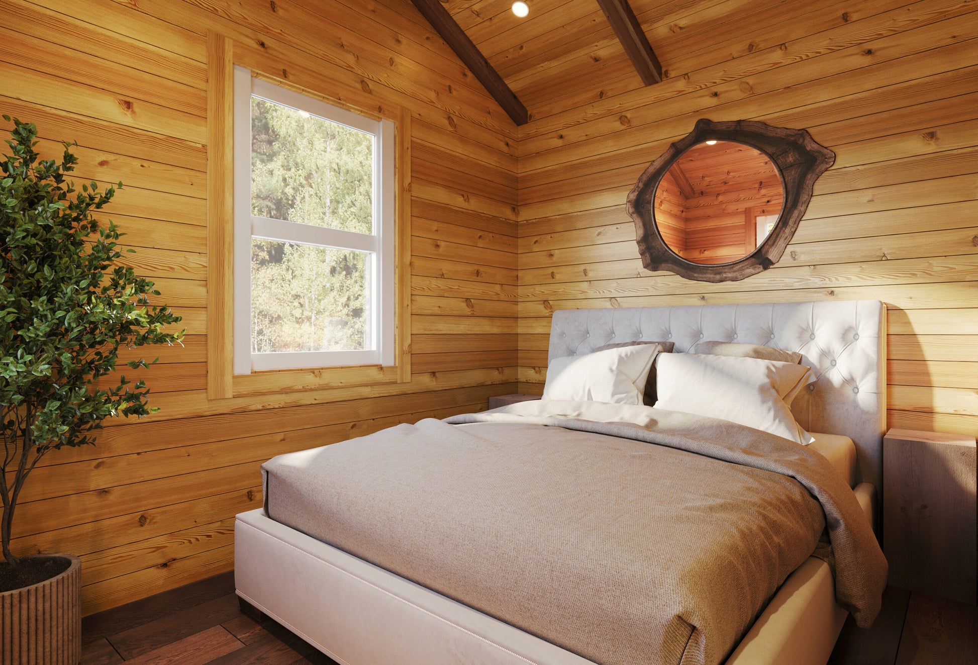 The Baby Bertha Cabin blends rugged charm with practical design, making it ideal for outdoor enthusiasts or anyone seeking a quiet retreat. The model includes a spacious living area, 1 bedroom, a bathroom, and a storage loft, offering plenty of room for relaxation or permanent living.