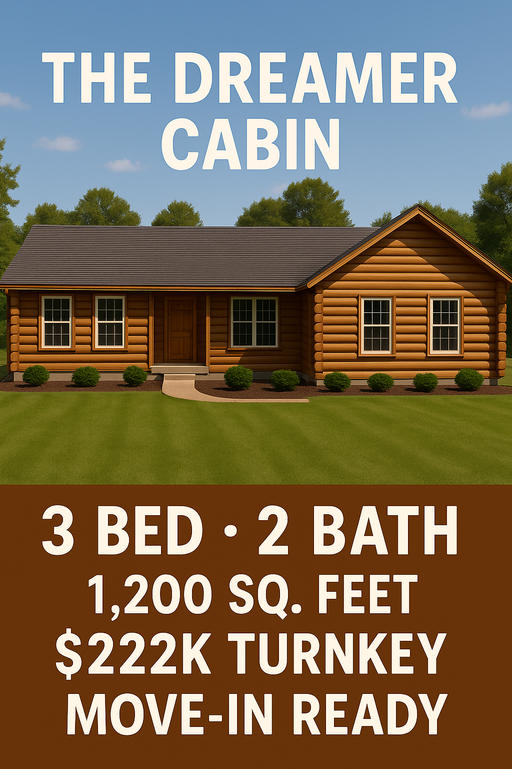 The Dreamer Cabin can be built to code for all 50 states and delivered across the U.S. (subject to deed restrictions). With its rustic log siding, high-quality craftsmanship, and practical layout, this cabin offers outstanding value as a permanent home, vacation retreat, or rental investment.