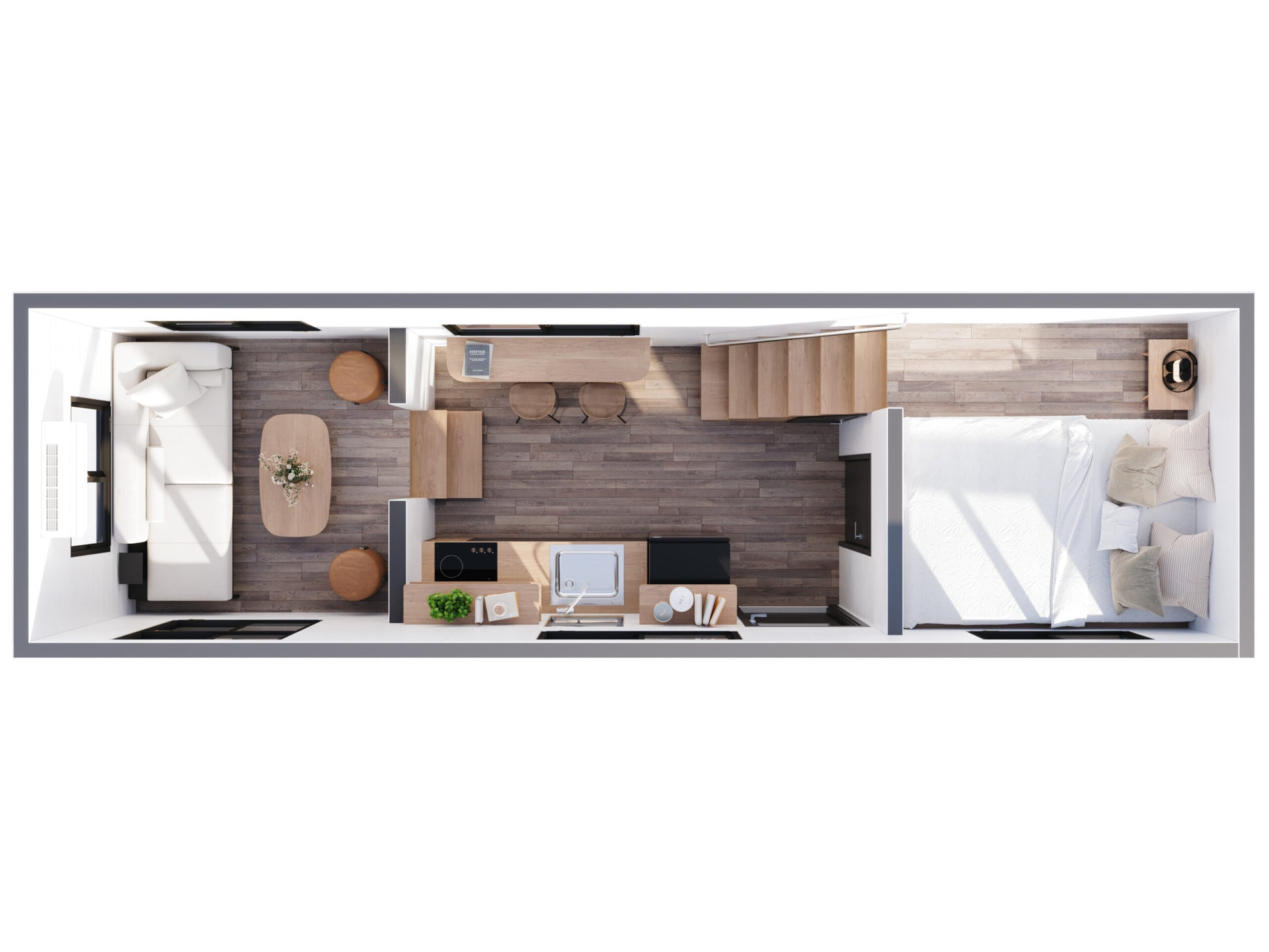 - Layout: 1 loft, 1 bathroom, and a flexible living/sleeping area