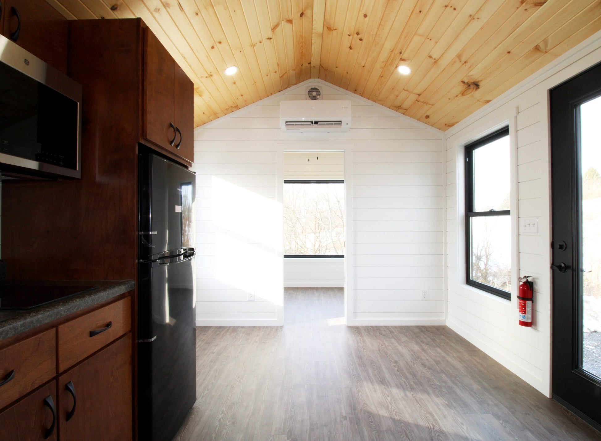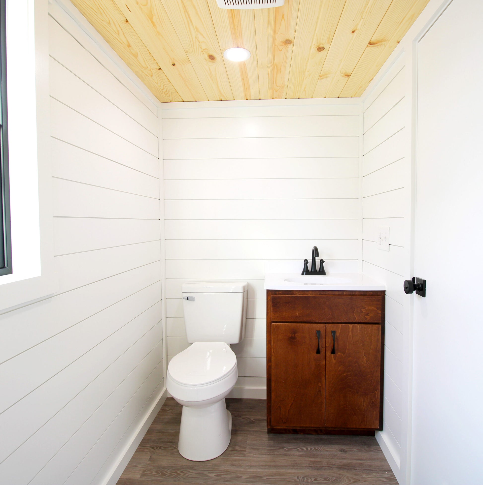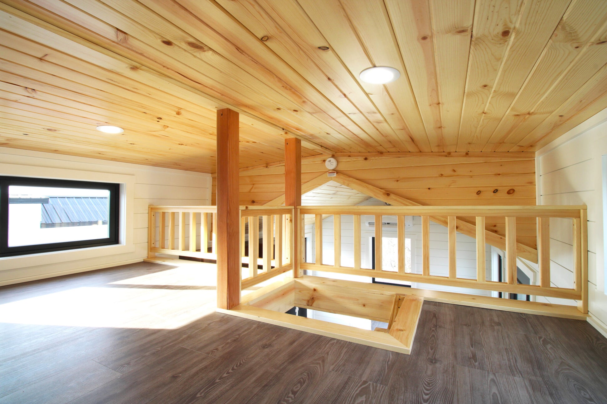The Zorro RV Park Model features a sleek, contemporary design with a charming log exterior and a modern interior finished in white shiplap and clear pine. The combination of a main-floor bedroom and an additional loft maximizes comfort and functionality, making this an ideal choice for a cozy family retreat or an income-generating rental property.